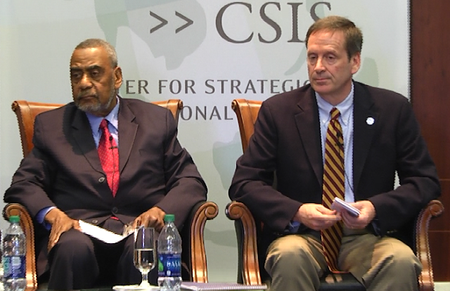 Katibu Mkuu wa chama cha wananchi CUF Maalim Seif Sharif Hamad, akielezea hali halisi ya siasa za Zanzibar, katikati akiwa na Mkurugenzi wa CSIS, Bi.Jennifer G. Cooke, pamoja na aliekua balozi wa Marekani nchini Tanzania Mark Green, ambae sasa hivi ni President, International Republican Institute