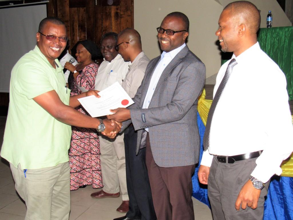 Mgeni Rasmi, Mganga Mkuu Mkoa wa Mwanza Dkt.Leonard Subi akikabidhi vyeti vya ushiriki kwa madaktari walioshiriki mafunzo/ semina hiyo