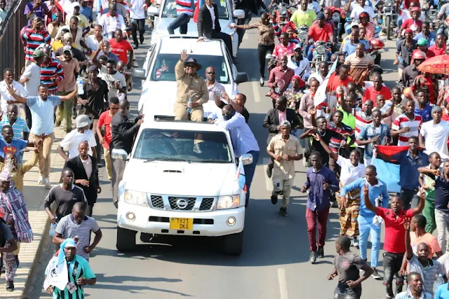 Mapokezi ya mgombea urais wa CHADEMA, Tundu Lissu alipowasili jijini Mwanza kuelekea katika uwanja wa Furahisha kwenye mkutano wa kampeni za chama hicho.